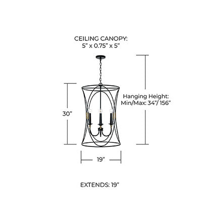 The Amara 4-Light Foyer captures timeless sophistication with a modern twist. Its circular silhouette is accented by hand-painted brass wrap details that add a layer of warmth and texture to the bold Matte Black frame. Perfect for entryways or hallways, this piece brings dramatic dimension and a refined edge to contemporary or transitional interiors.