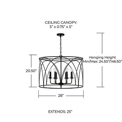 The Amara 6-Light Drum Pendant combines bold design with refined detailing for a statement-making fixture. Exaggerated arches and a dramatic drum silhouette create striking visual impact, while hand-painted brass accents add depth and warmth against the Matte Black finish. Perfect for dining rooms, kitchens, or living spaces, this pendant brings timeless sophistication with a modern edge.