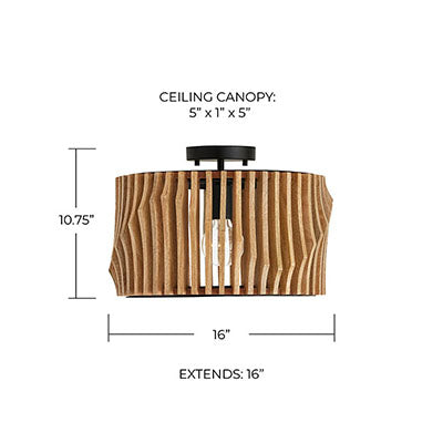 The Archer Dual Mount blends artistry and versatility in one captivating design. Whether installed as a pendant or a semi-flush ceiling light, its sculptural silhouette delivers stunning visual impact from every angle. Handcrafted from slats of natural mango wood, the fixture features an organic wave pattern that brings a sense of movement and warmth to your space. The light wood tones are beautifully balanced by a Matte Black metal frame, creating a perfect mix of natural texture and modern form. Ideal for entryways, dining rooms, or living areas, the Archer adds artisanal character wherever it’s placed.