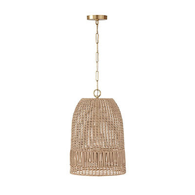 Natural materials meet modern design in the Naomi Medium Pendant. Artisan made from hand-woven rattan, this pendant features a hand-painted natural tan finish that highlights its rich, organic texture. Subtle Matte Brass details lend a touch of sophistication, balancing the earthy tones with a gentle metallic sheen. Perfect over a kitchen island, in a breakfast nook, or above a bedside table, the Naomi Pendant enhances any setting with warm, inviting light and timeless, handcrafted beauty.